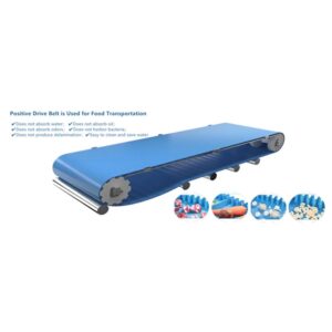 Positive drive belt is made of TPU material. It has zero risk of fabric contamination; Low cost of cleaning and maintenance; Good sealing and waterproof performance; No aging and delamination; Stable and strong low-temperature operation. Used in raw meat processing, fresh fruits and vegetables, frozen food, fried food and other food processing and transportation